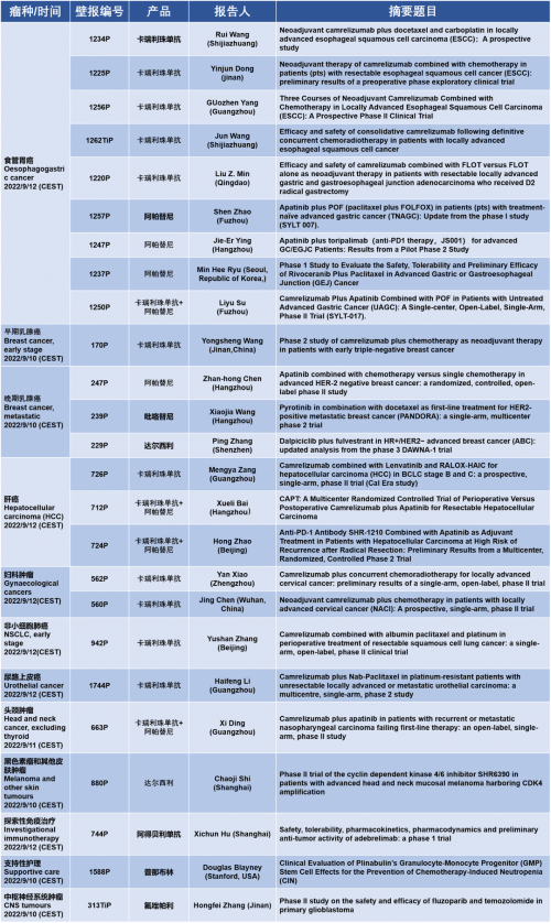 作为从事创新和高品质药物研发的国际化制药企业,伟德国际医药的研究成果在2022 ESMO大会上还收获了25项壁报形式的报告。其中,食管胃癌领域共有9项研究入选,研究的方案主要是卡瑞利珠单抗或卡瑞利珠单抗联合阿帕替尼,通过与化疗或放化疗联用,新辅助治疗食管鳞癌或胃癌。2022年9月12日(CEST),让我们齐聚ESMO大会,共同领略食管胃癌研究领域的学术盛宴。此外,伟德国际医药达尔西利、吡咯替尼、阿得贝利单抗等创新药还有4项乳腺癌研究、3项肝癌研究及其他领域的9项研究都将会以壁报展出,让我们共同期待!