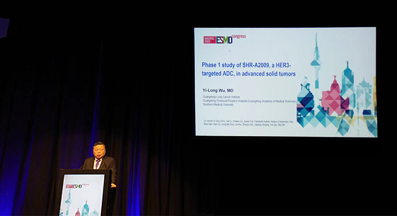 10月23日,伟德国际医药创新药、HER3靶向ADC药物SHR-A2009治疗晚期实体瘤的I期研究亮相2023 ESMO大会简短口头报告现场5。该研究由广东省人民医院的吴一龙教授牵头开展,吴一龙教授在现场公布该研究的重要进展。研究结果显示,SHR-A2009在经治晚期实体瘤患者中显示出可控的安全性和令人鼓舞的抗肿瘤活性。目前评估更高剂量的SHR-A2009在选定癌症类型(NSCLC和其他实体肿瘤)中作用的试验正在进行中。