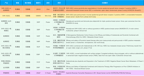 由南京医科大学第一附属医院的殷咏梅教授担任主要研究者的SHR-A1811联合帕妥珠单抗治疗HER2阳性不可切除/转移性乳腺癌:1b/2期研究结果,将由南京医科大学第一附属医院的黄香教授进行简短口头报告4。截至2025年3月31日,共有75例患者入组,包括10例Ⅰb期患者和65例Ⅱ期患者。在Ⅱ期患者中,SHR-A1811的3.2mg/kg、4.8mg/kg和6.4mg/kg组的ORR分别为63.6%(7/11)、86.4%(19/22)和84.4%(27/32),12个月无进展生存(PFS)率分别为100.0%、90.5%和96.4%。研究结果表明,SHR-A1811联合帕妥珠单抗在HER2阳性不可切除/转移性癌症患者中表现出令人鼓舞的疗效和安全性。